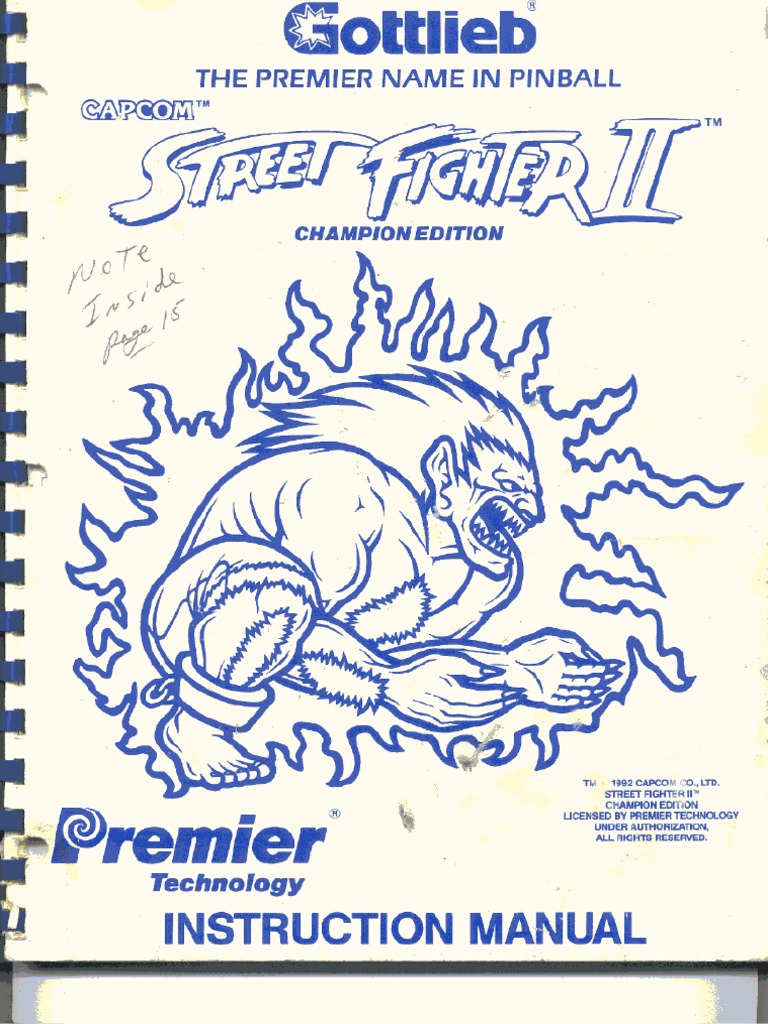 Gottlieb Street Fighter Ii Champion Edition Pinball Manual For